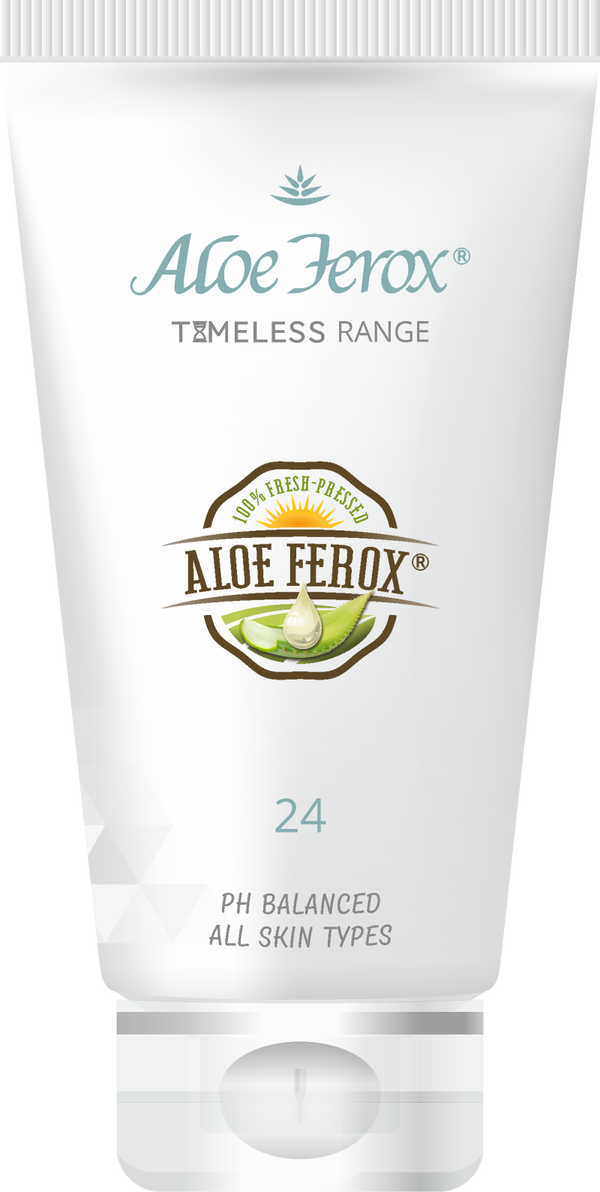 24 is een vakkundige dag- en nachtcrème tegen huidveroudering voor het gezicht, verrijkt met duurzame, voedende aloë ferox.